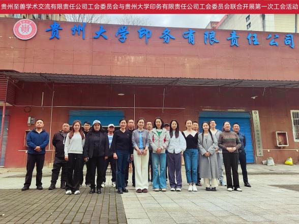 4月3日,贵州至善学术交流有限责任公司工会委员会、贵州大学印务有限责任公司工会委员会联合开展了第一次工会活动。本次活动坚持党建带工建,贵州大学科技产业党委副书记、工会主席张豫芳,贵州大学资产经营管理办公室党支部书记肖敏、纪检委员陈宏(至善公司、印务公司负责人)、贵州大学科技产业工会组织委员兼民主管理委员杨绍龙等同志列席第一环节活动。两家公司全体工会会员参加。